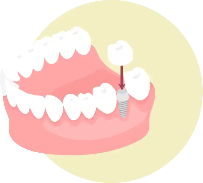 歯の欠損部に人工の歯根を埋め込み、その上に土台を作り、歯を被せます。
