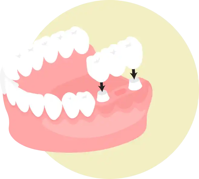 ブリッジとは、なくなった歯の両隣の歯を削って橋げたとし、そこに橋を渡すように人口の歯をかぶせる治療法です。